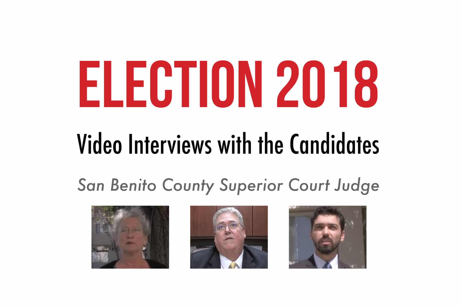 San Benito Live is presenting video interviews with local candidates running on the June 5 primary ballot. Here, see interviews with three candidates appearing in alphabetical order — Frances Henderson, Gregory LaForge and Omar Rodriguez — running for the Superior Court judge seat held by the retiring Harry Tobias.