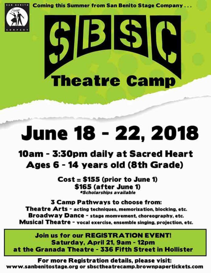 Prospective theater performers have until June 1 to sign up for theatre camp with the San Benito Stage Company at a discounted rate.